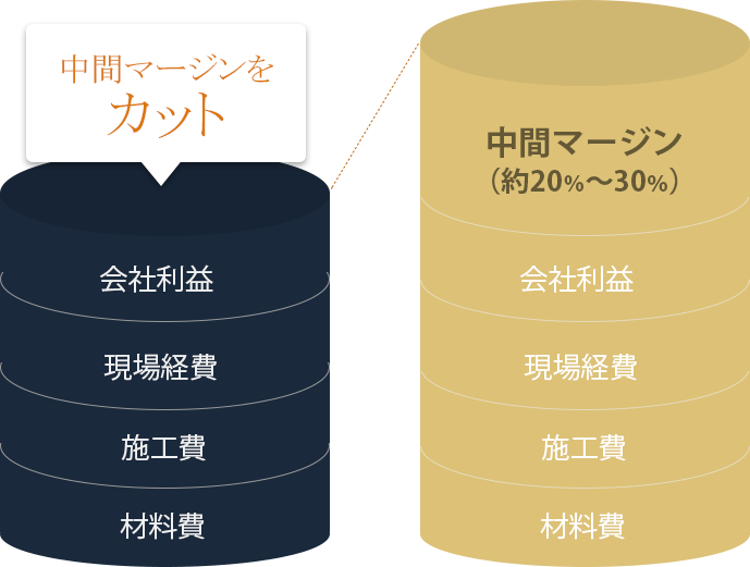 お客様と直接お取引をさせて頂くことで、低価格かつ高品質な施工を実現しています。